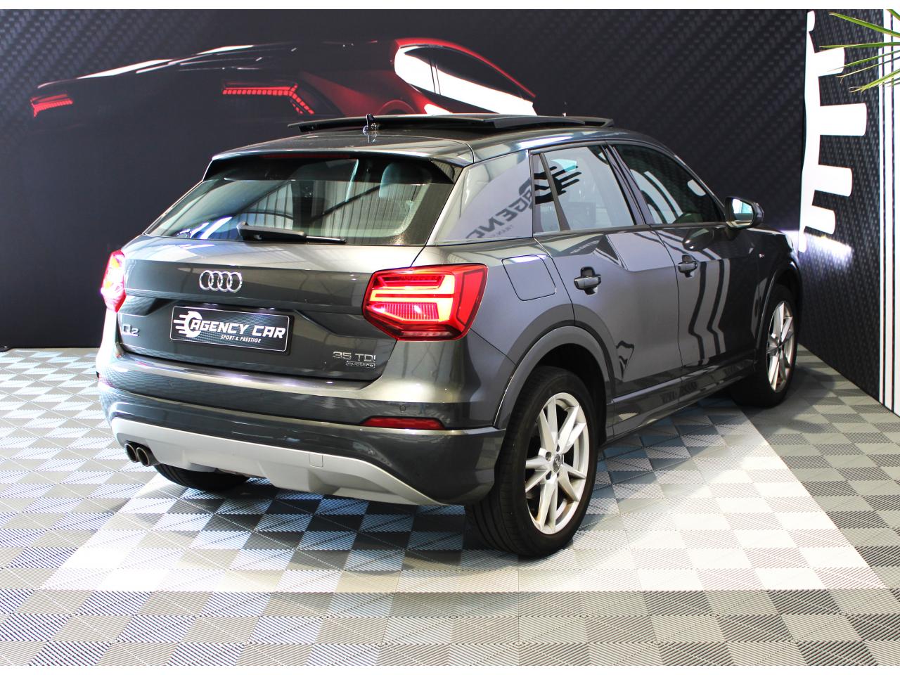 AUDI Q2 S Line, GRIS Daytona, 8 cv, 5 portes, première mise en circulation le 11-12-2019, garantie 6 mois minimum.