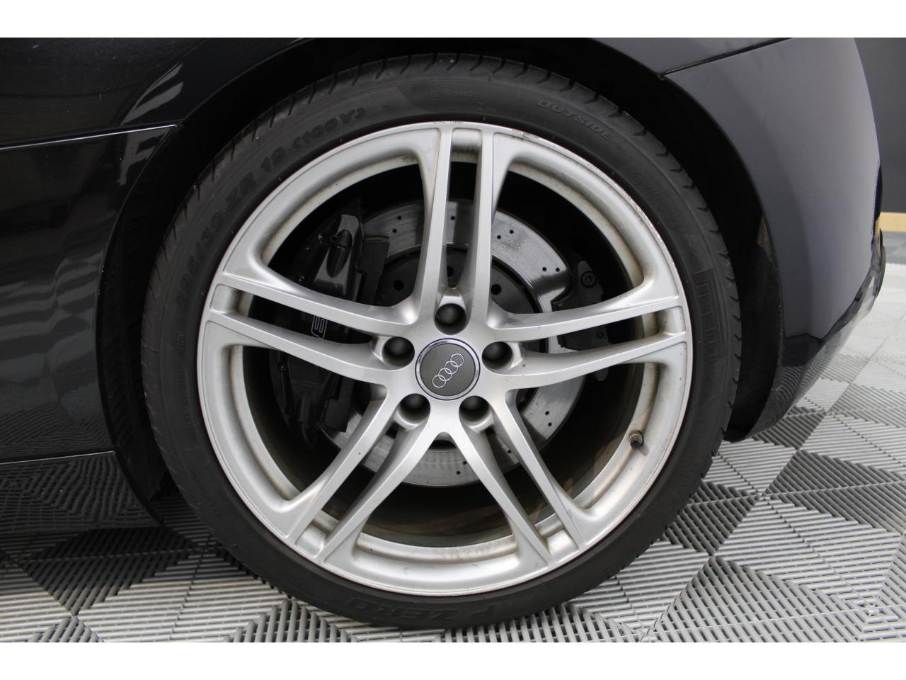 Antipatinage ASR : empêche le patinage des roues motrices ; assure une motricité optimaleChâssis “Sport”Châssis Sport avec réglages dynamiques de châssisClimatisation automatiqueColonne de direction de sécuritéContrôle de la pression des pneumatiquesDéverrouillage du capot moteur, de la malle avant et de la trappe à carburant depuis la place conducteurDirection assistée électromécanique, assistance asservie à la vitesseEBV : Répartiteur électronique de freinageEclairage intérieur à extinction temporiséeEclairage intérieur à temporisation avec contacteurs sur toutes les portièresPommeau de levier de vitesses en aluminiumProjecteurs au Xénon, lave phares et réglage de site des phares automatiqueProtection anticollision latérale dans les portières, constituée de profilés d'aluminium rigidesQuattro, transmission intégrale permanente augmentant la motricité et la sécurité activeRadio FM et AM avec lecteur CD (compatible MP3), deux lecteurs de cartes MMC/SD pour fichiers MP3, écran couleurs TFT de 6,5 pouces, sept haut-parleurs, amplificateur 5 canaux, puissance totale 140 wattsSortie d'échappement double à gauche et à droiteSpoiler AR escamotable asservi à la vitesseSpoiler arrière escamotable asservi à la vitesse pour un meilleur appui aérodynamiqueTélécommande à fréquence radio pour le verrouillage centralisé, intégrée à la clé du véhiculeTrappe à carburant en aluminium avec estampillage R8Verrouillage centralisé à télécommandeVitres électriques avec protection antipincement, ouverture/fermeture par impulsion et à l'aide du verrouillage centralisé