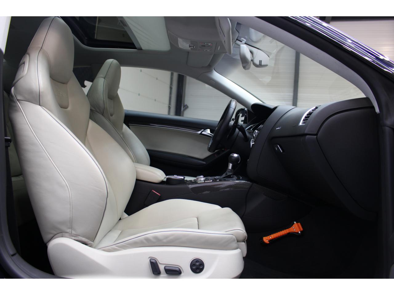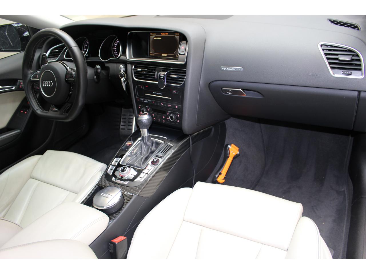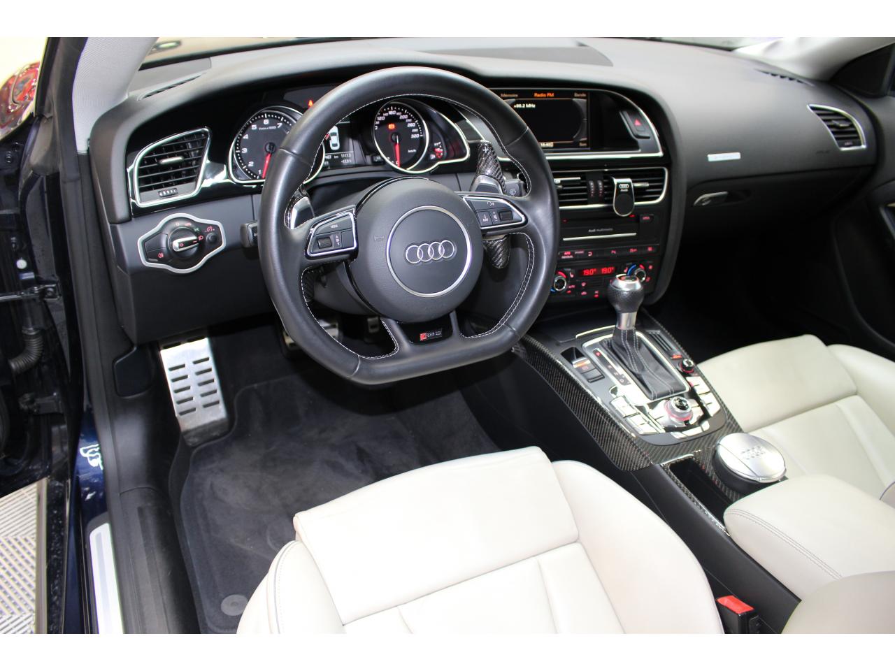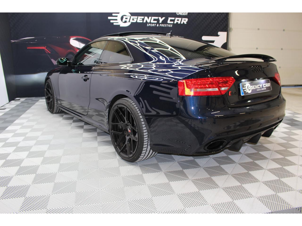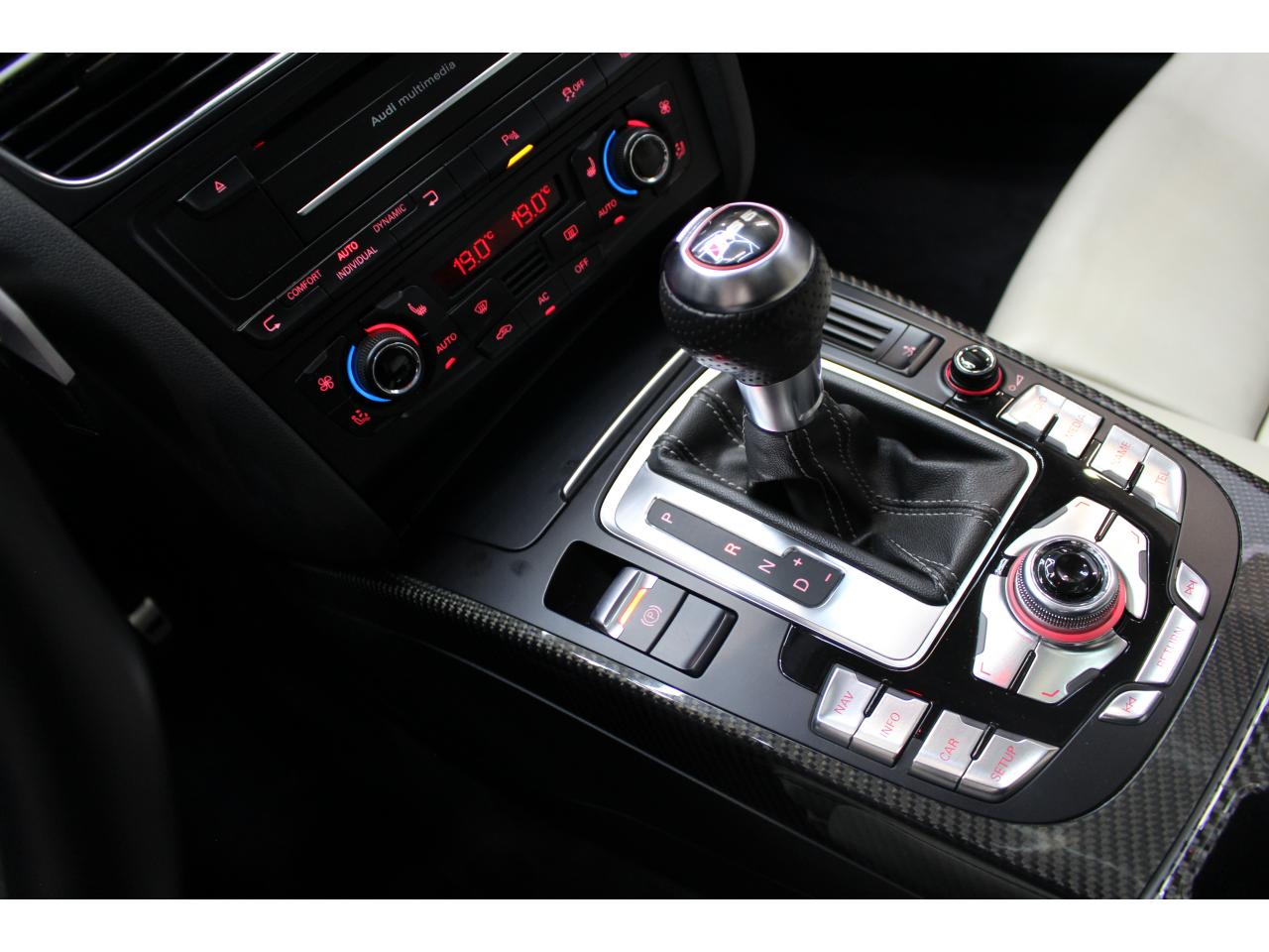 Antipatinage ASR : empêche le patinage des roues motrices ; assure une motricité optimaleApplications décoratives en carbone sur contre-portes et console centraleChâssis Sport RS avec suspension et amortisseurs plus fermes pour un contact plus direct avec la chaussée et une conduite sportiveCiel de pavillon en tissu noir ou argent étoile au choixClimatisation automatique Confort 3 zones à fonctionnalités étendues et affichage numériqueContact d'allumage électronique, clé de contact mémorisant différentes données d'entretienDétecteur de pluie et allumage automatique des projecteursEtriers de freins laqués noir avec logo RS 5Inscriptions RS 5 sur les seuils de portes, les étriers de freins, la calandre, la malle de coffre, le volant, le levier de vitesses S tronic, le compte-tours et la cléQuattro : transmission intégrale permanente avec répartition asymétrique et dynamique de coupleSièges Sport S à l'avant avec appuis-têtes intégrésSorties d'échappement ovales à gauche et à droiteVolant Sport multifonction en cuir perforé style 3 branches avec emblème RS 5, surpiqûres contrastées gris pierre, palettes de changement de vitesse style aluminium pour S tronic derrière le volant, airbag grand volume, réglable en hauteur et en profondeurXénon Plus incluant réglage automatique du site des phares, feux diurnes par bandeau de LED et lave-phares, feux arrière à LED pour feux de position et de stop