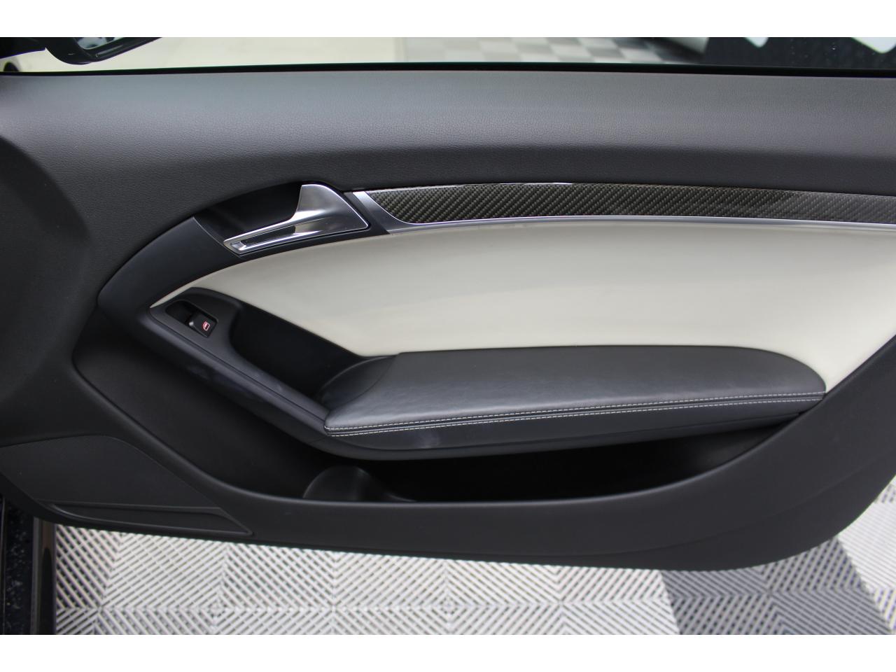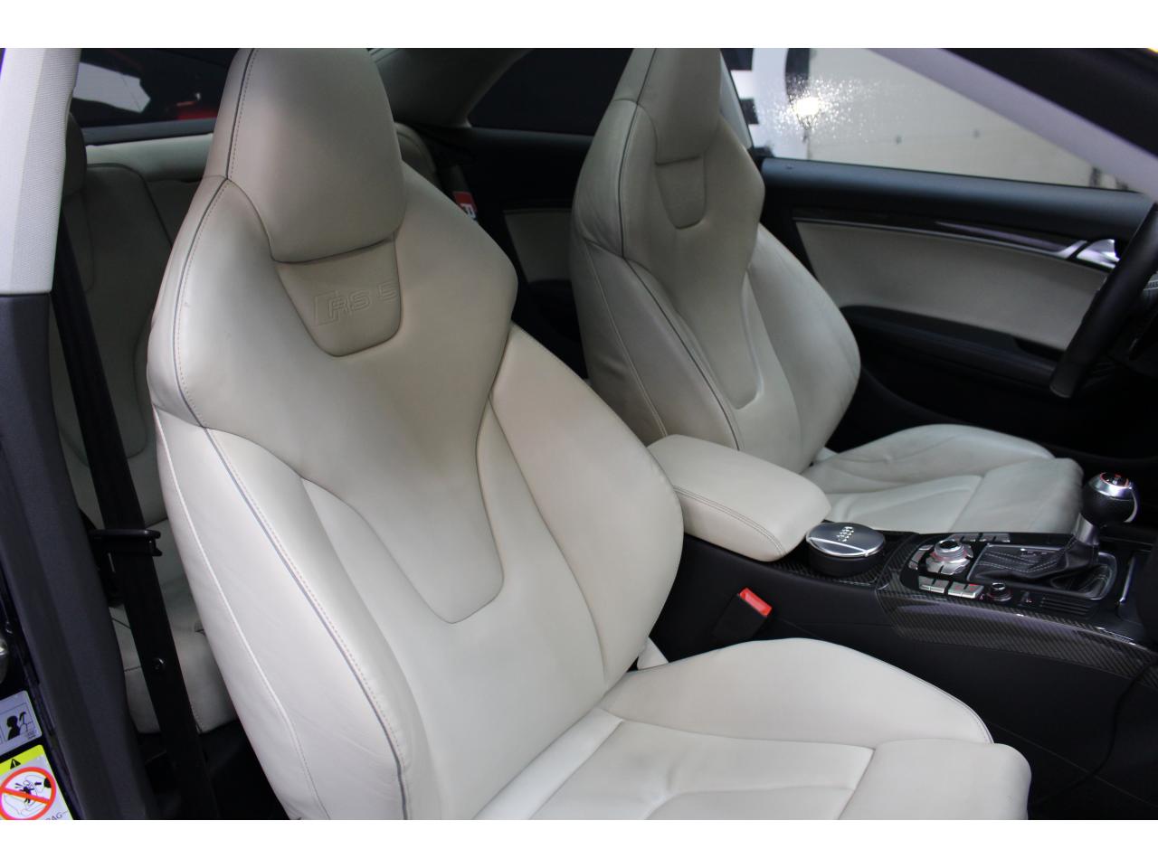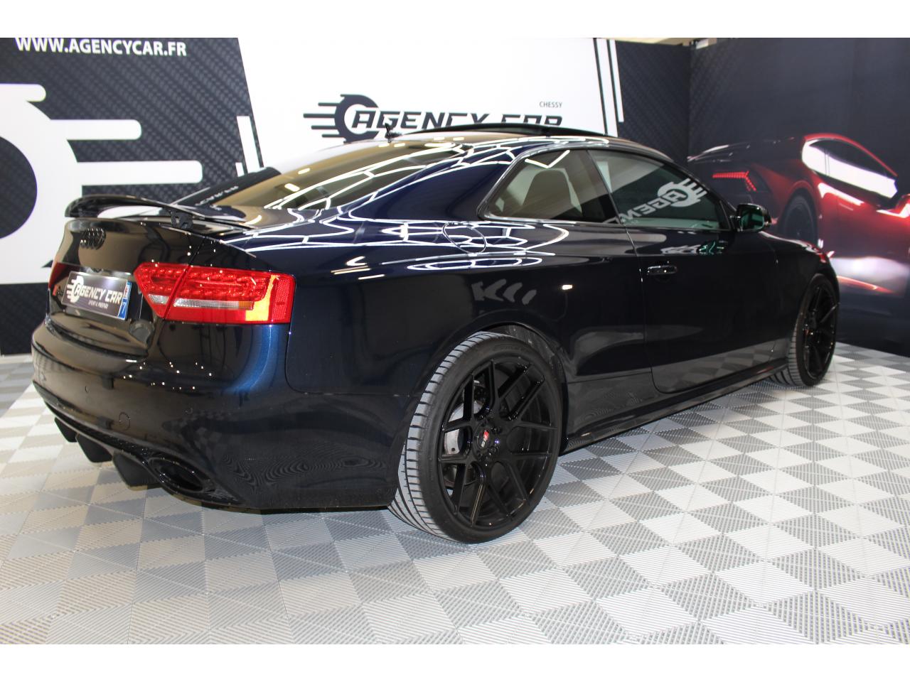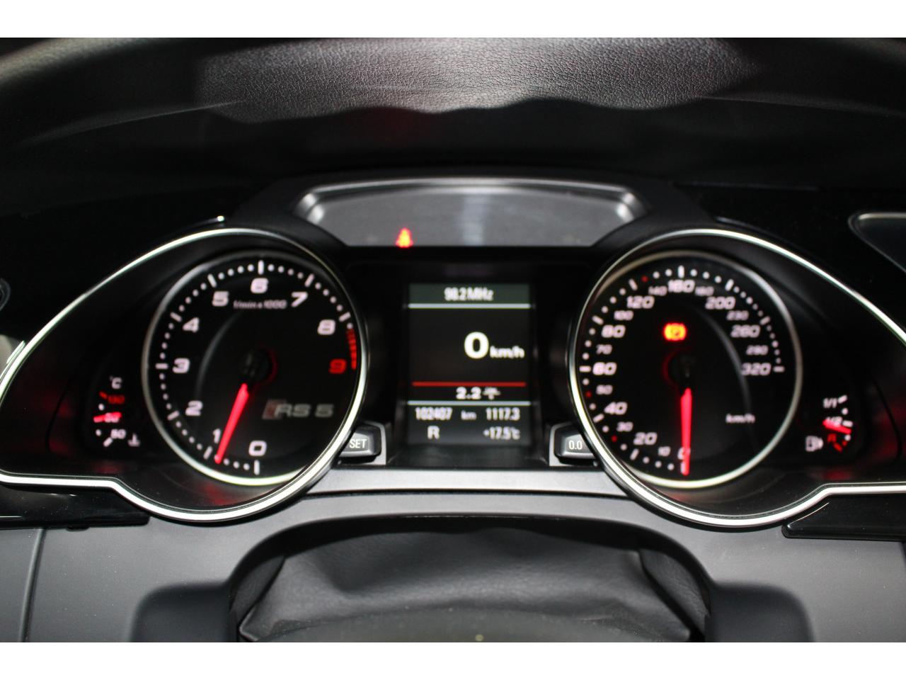 Antipatinage ASR : empêche le patinage des roues motrices ; assure une motricité optimaleApplications décoratives en carbone sur contre-portes et console centraleChâssis Sport RS avec suspension et amortisseurs plus fermes pour un contact plus direct avec la chaussée et une conduite sportiveCiel de pavillon en tissu noir ou argent étoile au choixClimatisation automatique Confort 3 zones à fonctionnalités étendues et affichage numériqueContact d'allumage électronique, clé de contact mémorisant différentes données d'entretienDétecteur de pluie et allumage automatique des projecteursEtriers de freins laqués noir avec logo RS 5Inscriptions RS 5 sur les seuils de portes, les étriers de freins, la calandre, la malle de coffre, le volant, le levier de vitesses S tronic, le compte-tours et la cléQuattro : transmission intégrale permanente avec répartition asymétrique et dynamique de coupleSièges Sport S à l'avant avec appuis-têtes intégrésSorties d'échappement ovales à gauche et à droiteVolant Sport multifonction en cuir perforé style 3 branches avec emblème RS 5, surpiqûres contrastées gris pierre, palettes de changement de vitesse style aluminium pour S tronic derrière le volant, airbag grand volume, réglable en hauteur et en profondeurXénon Plus incluant réglage automatique du site des phares, feux diurnes par bandeau de LED et lave-phares, feux arrière à LED pour feux de position et de stop