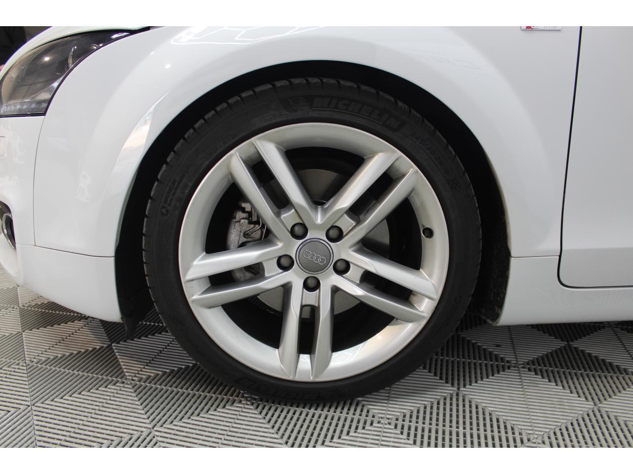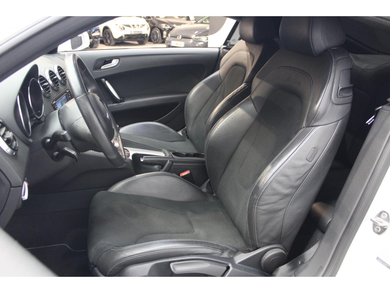 Airbags : airbags grand volume côtés conducteur et passager avant, deux niveaux de gonflement, airbag passager avant désactivable ; airbags latéraux (tête/thorax) à l'avant, intégrés au dossier des siègesZ - FRAIS DE DOSSIER - 690 eurosEDS : blocage électronique de différentielESC : contrôle électronique de stabilisation. Relie ABS, EBV, ASR et EDSFeu arrière de brouillard, intégré au centre dans le bouclier arrièreIndicateur de température extérieure, prévient, en cas de température inférieure à +5 °C, du risque de verglas par l'affichage d'un cristal de glaceInscription TT à l'arrière et sur le compte-toursInscriptions S line sur seuils de portes et ailes avantLave-essuie-glace deux vitesses, commande d'intermittence à 4 positions, commande de balayage coup par coup et de lavage-balayage automatique, coup de balai automatique après le dernier balayageRégulateur de vitesse (actif dès 30 km/h)Sellerie mixte cuir Nappa / tissu Sprint avec logo S line