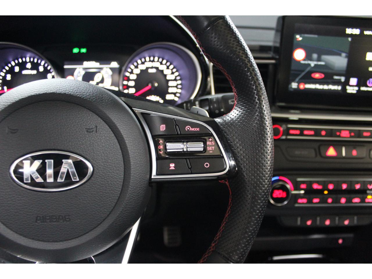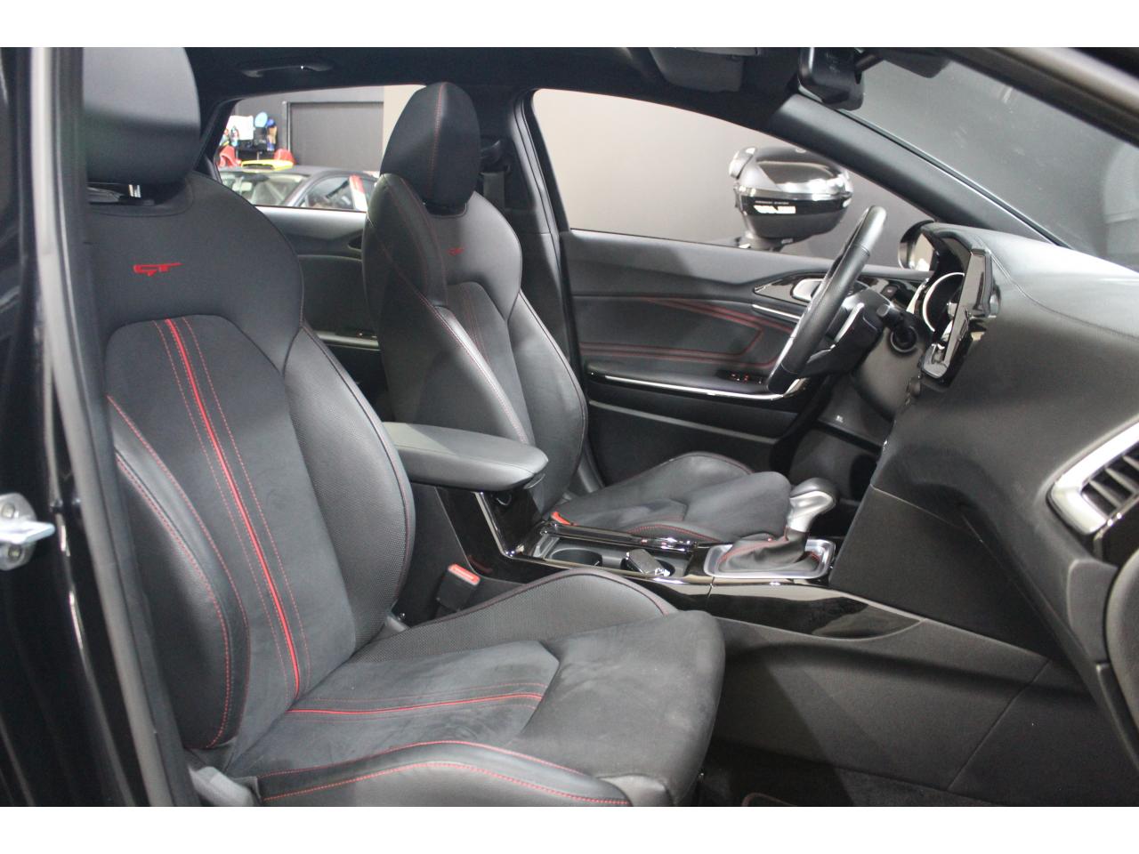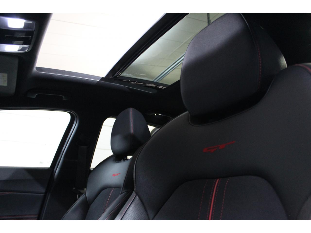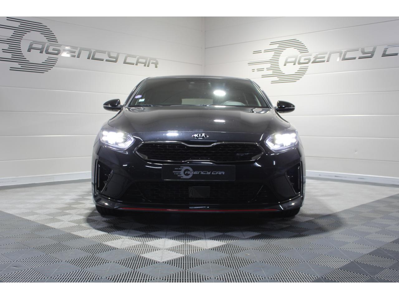 Accoudoir central arrière avec porte-gobelets intégrésAccoudoir central avant coulissant avec coffre de rangementAssistance active au maintien de voieAssistance au démarrage en côteAssistance au freinage d'urgenceCaméra de recul avec lignes de guidage activesChargeur de téléphone portable à inductionClimatisation automatique bi-zoneContrôle de pression des pneus ( TPMS )Contrôle électronique de la trajectoire (ESC)Diffuseur arrière GTDirection à assistance électrique asservie à la vitesseEcran tactile couleur 10.25", système de navigation avec cartographie Europe, services connectés TomTom LIVE offerts pendant 7 ans, compatibilité Android Auto et Apple CarPlayFrein de stationnement électronique (EPB)Hayon à ouverture électrique mains-libresInserts noir laqué au niveau de la console centrale et des ouïes d'aération du tableau de bordJantes en alliage 18 poucesLève-vitres électriques avant et arrière, séquentiels et antipincementLimiteur de vitesseOuverture et démarrage sans clé “Smart Key”Palettes de changement de rapports au volantPeinture métalliséeProjecteurs Full LEDRadars de stationnement arrièreRadio MP3, 6 haut-parleurs (dont 2 tweeters), avec commandes au volantReconnaissance des panneaux de limitation de vitesseRéglages lombaires électriques sur sièges AVSélecteur de conduite DRIVE MODE (Normal ou Sport)Sellerie GT cuir/suédine noir avec surpiqûres rougesSiège conducteur à réglages électrique, 4 axes, avec mémorisation (2 positions)Siège passager avant réglable en hauteurSièges arrières chauffantsSièges avant chauffantsSystème audio premium JBL comprenant 8 hauts-parleurs dont 2 tweeters, un caisson de basse et un amplificateur externeSystème de gestion intelligente des feux de route (HBA)Système de surveillance des angles mortsSystème de téléphonie mains-libres Bluetooth avec reconnaissance vocale et fonction streaming audio (selon compatibilité du téléphone)Système télématique UVO Connect offert pendant 7 ansSystèmes avancés d’aide à la conduiteToit vitré ouvrant / entrebâillant électriquement, avec rideau occultant électriqueVolant chauffantVolant cuir avec méplatVolant réglable en hauteur et en profondeur