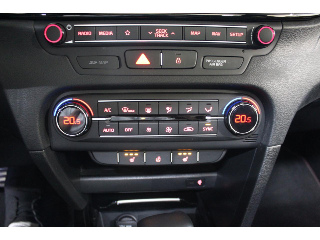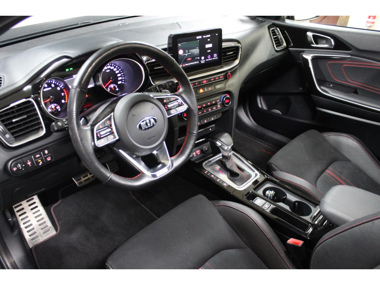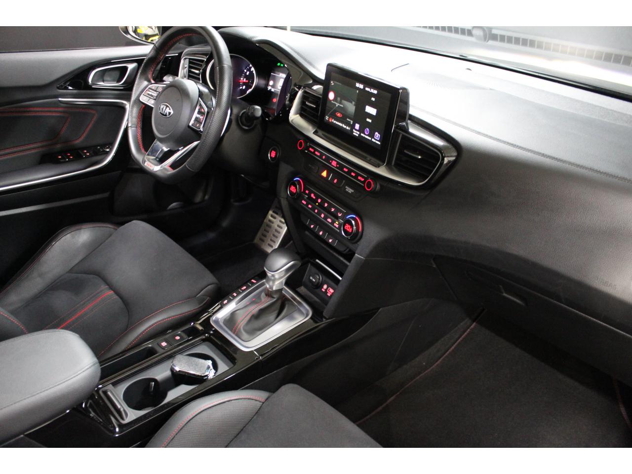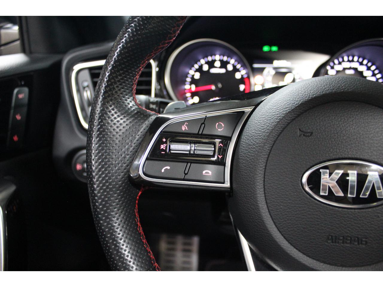 Accoudoir central arrière avec porte-gobelets intégrésAccoudoir central avant coulissant avec coffre de rangementAssistance active au maintien de voieAssistance au démarrage en côteAssistance au freinage d'urgenceCaméra de recul avec lignes de guidage activesChargeur de téléphone portable à inductionClimatisation automatique bi-zoneContrôle de pression des pneus ( TPMS )Contrôle électronique de la trajectoire (ESC)Diffuseur arrière GTDirection à assistance électrique asservie à la vitesseEcran tactile couleur 10.25", système de navigation avec cartographie Europe, services connectés TomTom LIVE offerts pendant 7 ans, compatibilité Android Auto et Apple CarPlayFrein de stationnement électronique (EPB)Hayon à ouverture électrique mains-libresInserts noir laqué au niveau de la console centrale et des ouïes d'aération du tableau de bordJantes en alliage 18 poucesLève-vitres électriques avant et arrière, séquentiels et antipincementLimiteur de vitesseOuverture et démarrage sans clé “Smart Key”Palettes de changement de rapports au volantPeinture métalliséeProjecteurs Full LEDRadars de stationnement arrièreRadio MP3, 6 haut-parleurs (dont 2 tweeters), avec commandes au volantReconnaissance des panneaux de limitation de vitesseRéglages lombaires électriques sur sièges AVSélecteur de conduite DRIVE MODE (Normal ou Sport)Sellerie GT cuir/suédine noir avec surpiqûres rougesSiège conducteur à réglages électrique, 4 axes, avec mémorisation (2 positions)Siège passager avant réglable en hauteurSièges arrières chauffantsSièges avant chauffantsSystème audio premium JBL comprenant 8 hauts-parleurs dont 2 tweeters, un caisson de basse et un amplificateur externeSystème de gestion intelligente des feux de route (HBA)Système de surveillance des angles mortsSystème de téléphonie mains-libres Bluetooth avec reconnaissance vocale et fonction streaming audio (selon compatibilité du téléphone)Système télématique UVO Connect offert pendant 7 ansSystèmes avancés d’aide à la conduiteToit vitré ouvrant / entrebâillant électriquement, avec rideau occultant électriqueVolant chauffantVolant cuir avec méplatVolant réglable en hauteur et en profondeur