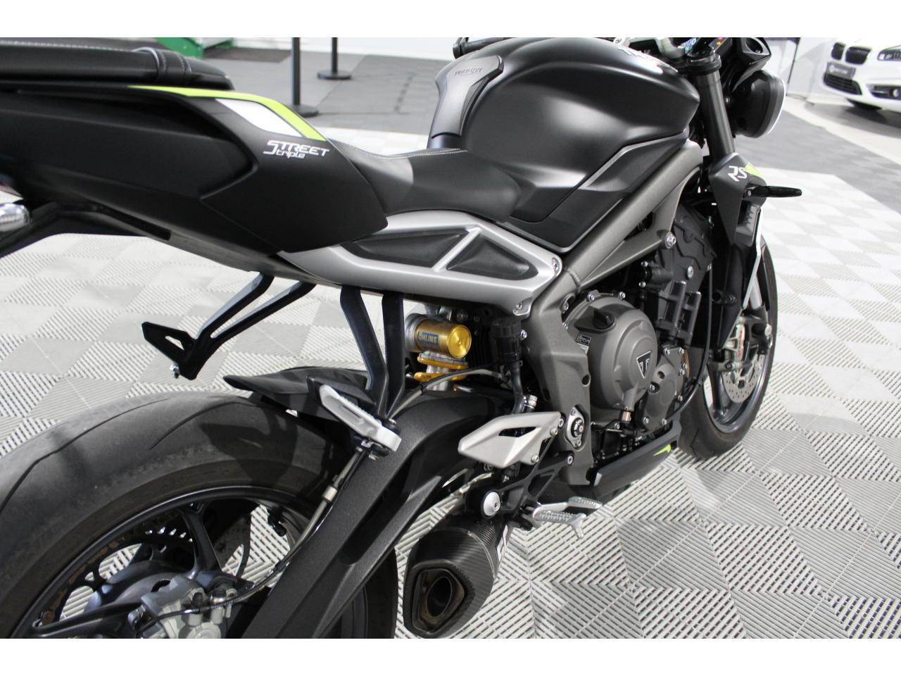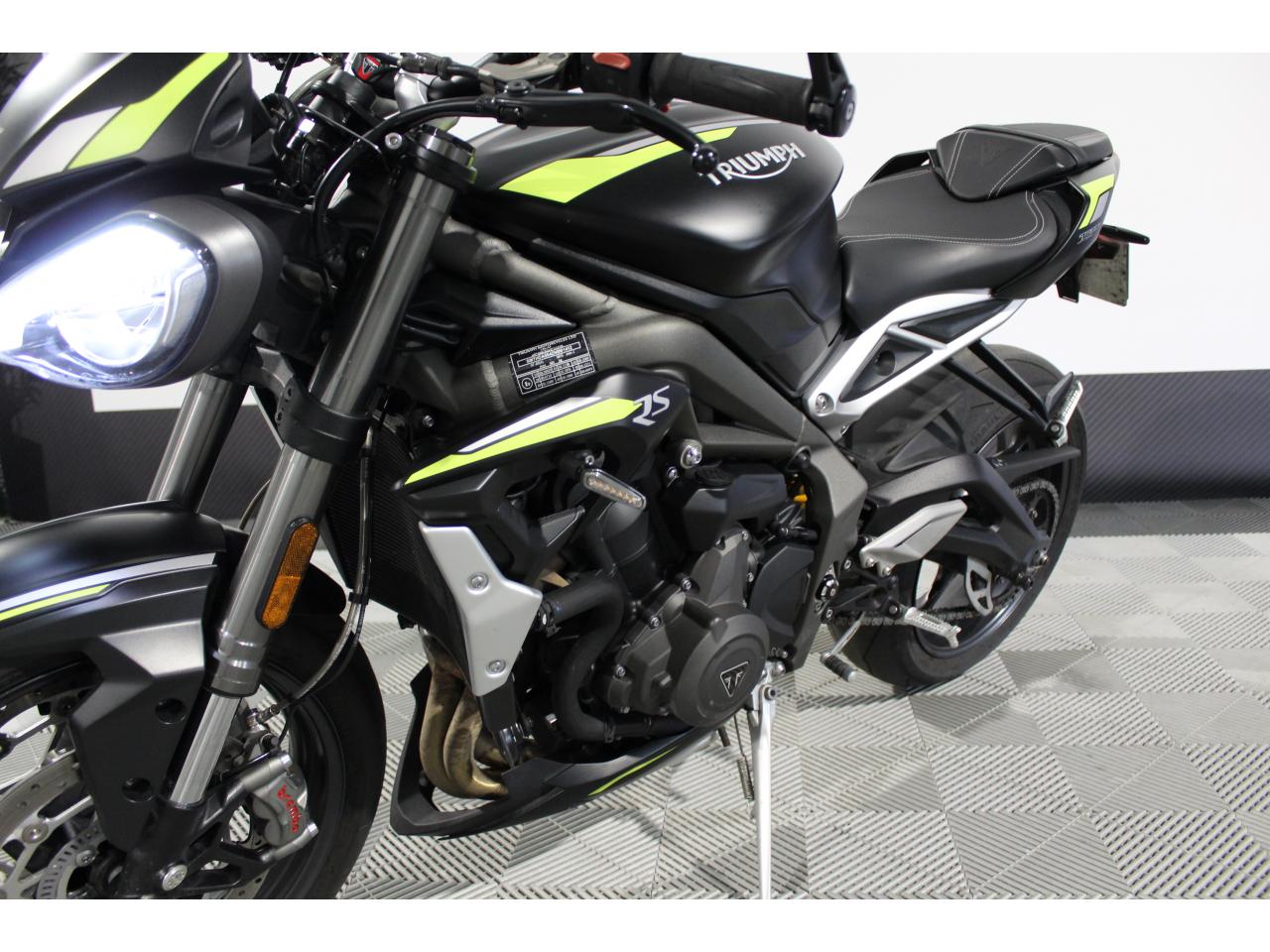 Nous vous proposons TRIUMPH STREET TRIPLE 765 RS, NOIR, 8 cv, première mise en circulation le 12-07-2022, garantie 6 mois.